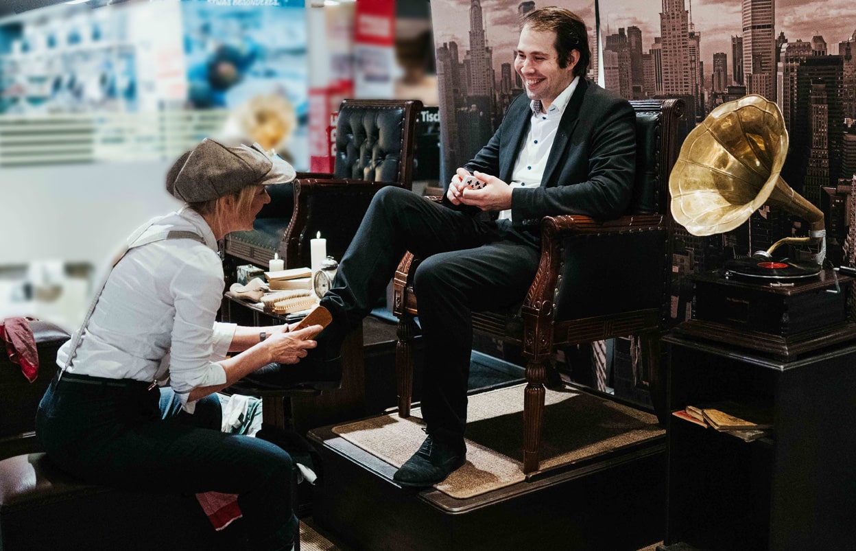 Ob als eleganter Empfang, humorvolle Einlage oder originelles Promotion-Tool – die Schuhputz-Company sorgt für Glanz, Lächeln und bleibende